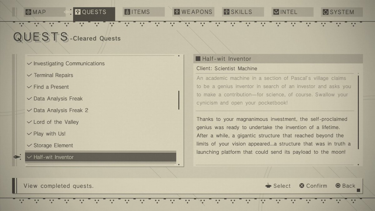 Trending Half Wit Inventor The genius inventor toiled day & night to build the invention of a lifetime. Half Wit Inventor / Just doing and sharing side quest from nier: